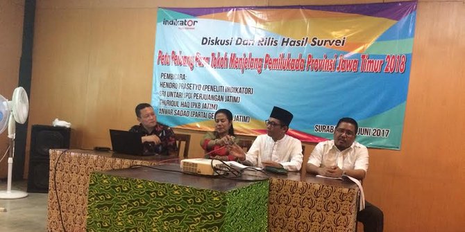 Selain merilis peta politik jelang Pilgub 2018, lembaga survei Indikator Politik Indonesia juga mengaku mendapati 'geliat' politik nasional di Jawa Timur. Ternyata, saat ini, perolehan suara Presiden Joko Widodo (Jokowi) masih menguasai provinsi timur Pulau Jawa ini. ADUQ Berkata